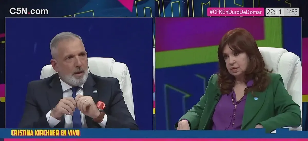 La vicepresidenta de la Nación fue entrevistada por el periodista Pablo Duggan en el programa televisivo Duro de Domar que se transmite por C5N.