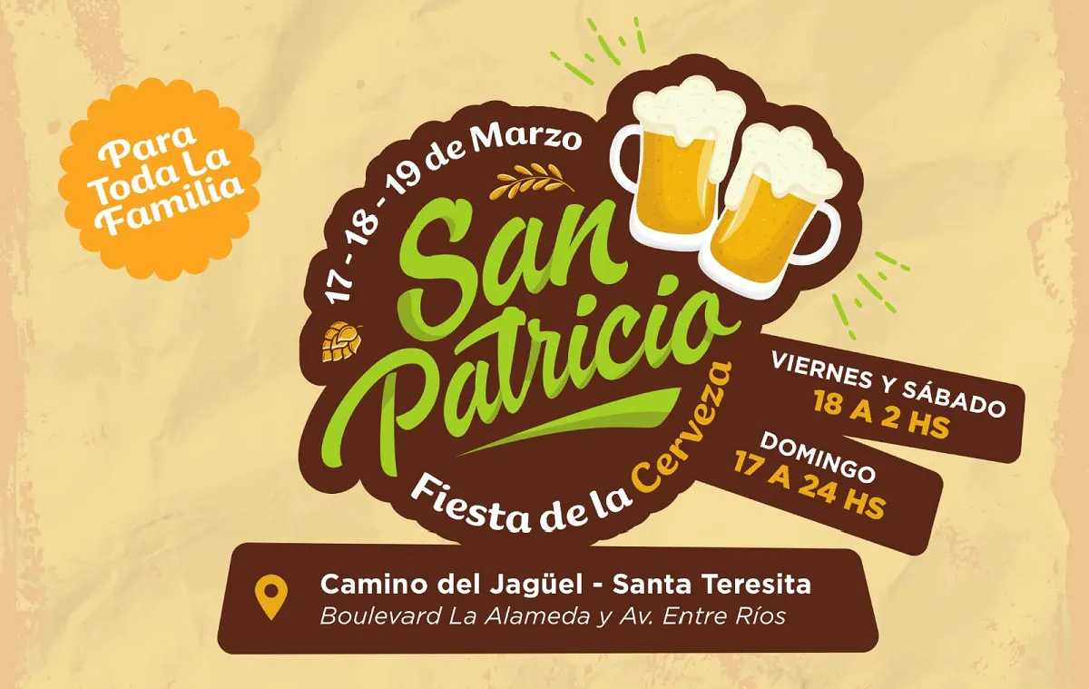 Desde el viernes 17 y hasta el domingo 19 de marzo se realizará los festejos de San Patricio en La Costa con una gran Fiesta de la Cerveza por. El encuentro se realizará en el Camino del Jagüel de Santa Teresita.