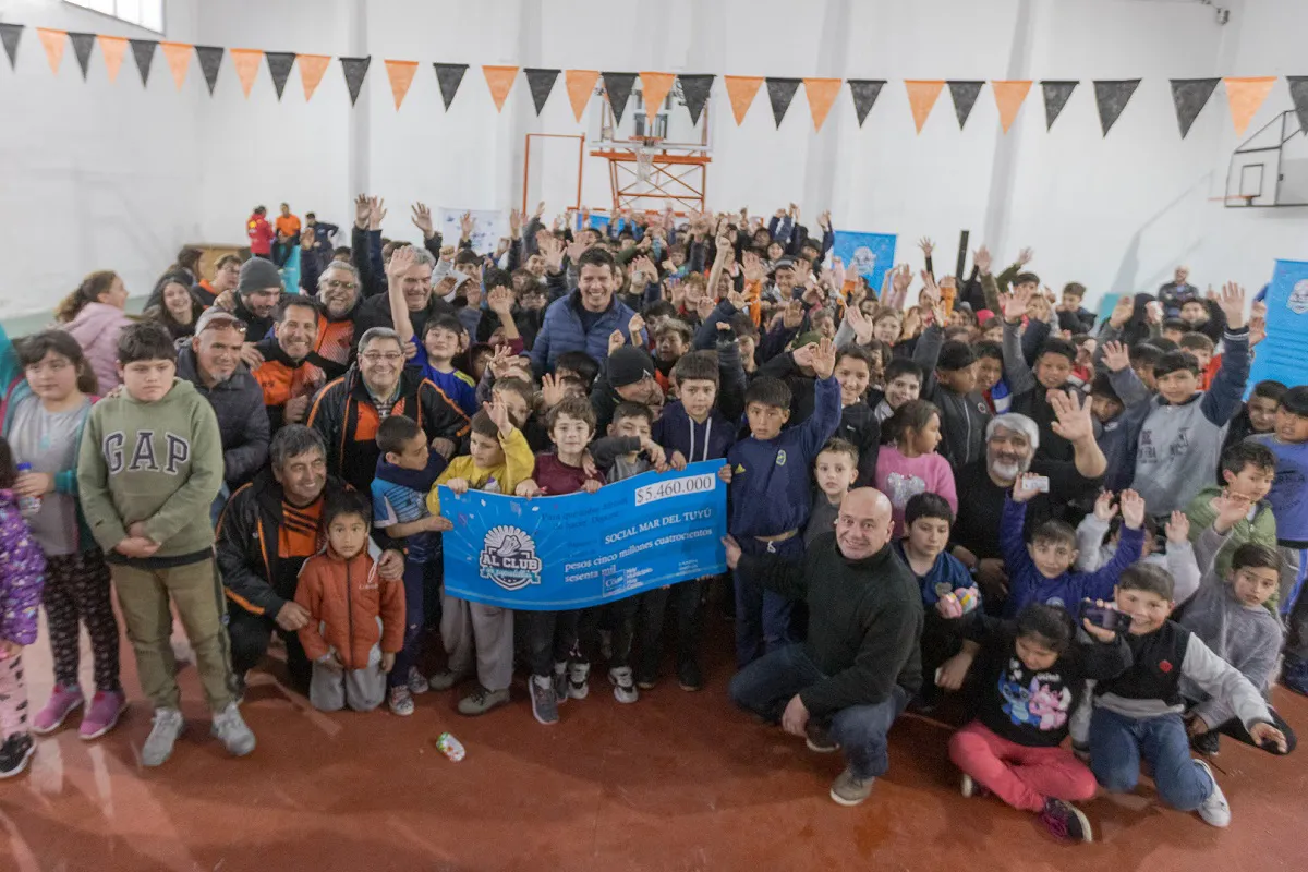 El intendente Cristian Cardozo encabezó la entrega en el Club Social, Cultural y Deportivo Mar del Tuyú. En total, 273 chicos y chicas de este club recibieron el voucher de 20.000 pesos para la compra del calzado deportivo.