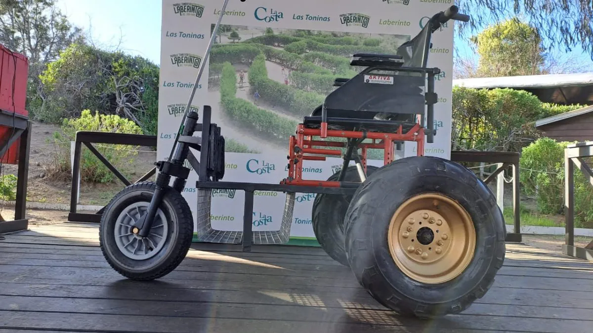 El Parque Laberinto de Las Toninas incorporó una silla de ruedas adaptada